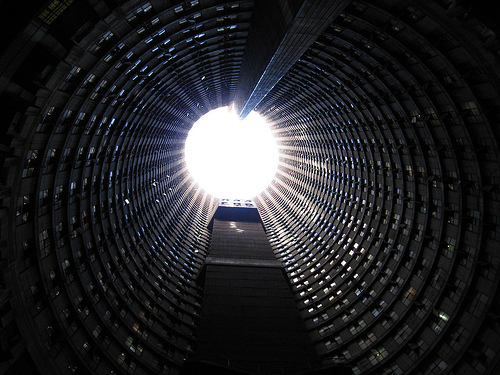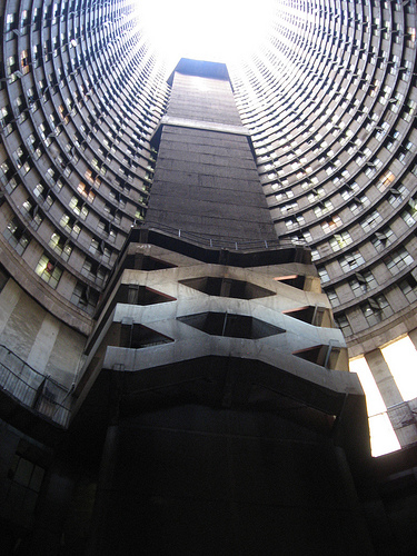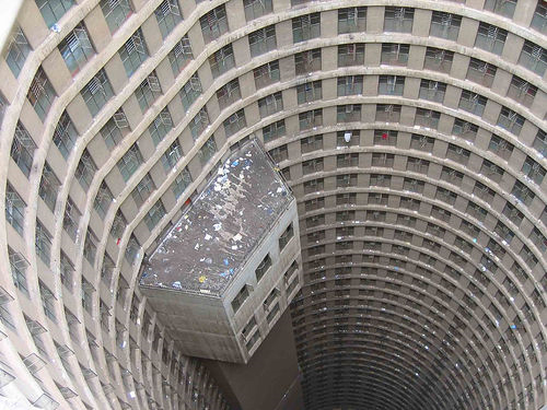 내부에서 위로찍은 폰테시티 아파트의 사진
