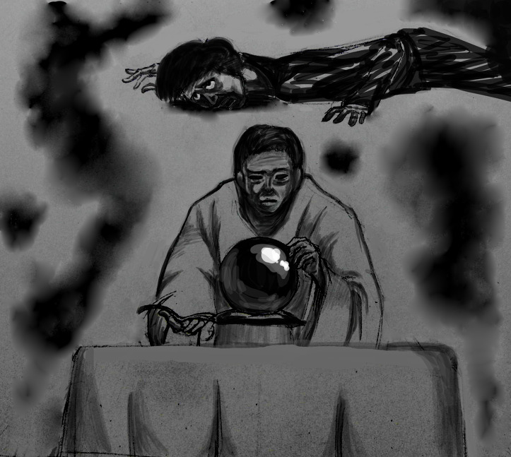 점쟁이는 다시 한 번 확인하고 수정구슬에 손을 대고 점을 치기 시작했다.