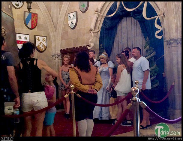 미리 예약한 이름을 대고 입구를 통과하면 웨이팅 홀이 나옵니다. 여기서 손님들은 신데렐라와 짧은 대화도 나누고 사진도 찍으면서 기다리게 됩니다. 그러다 테이블 자리가 나면 "누구누구네 왕실 가족, 입장하십시오"라고 안내를 하죠.