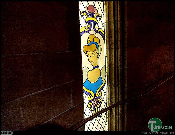 나선형 계단을 올라가는 길에 보이는 신데렐라 스테인드 글라스. 곳곳에 깨알같은 디테일이 살아있습니다.