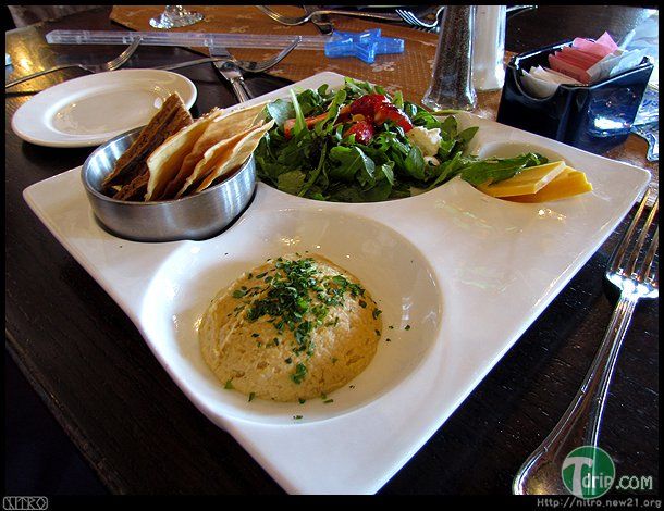 전채는 '셰프의 테이스팅 메뉴'. 병아리콩을 갈아 만든 후무스에 두 종류의 비스킷, 샐러드, 모듬치즈.