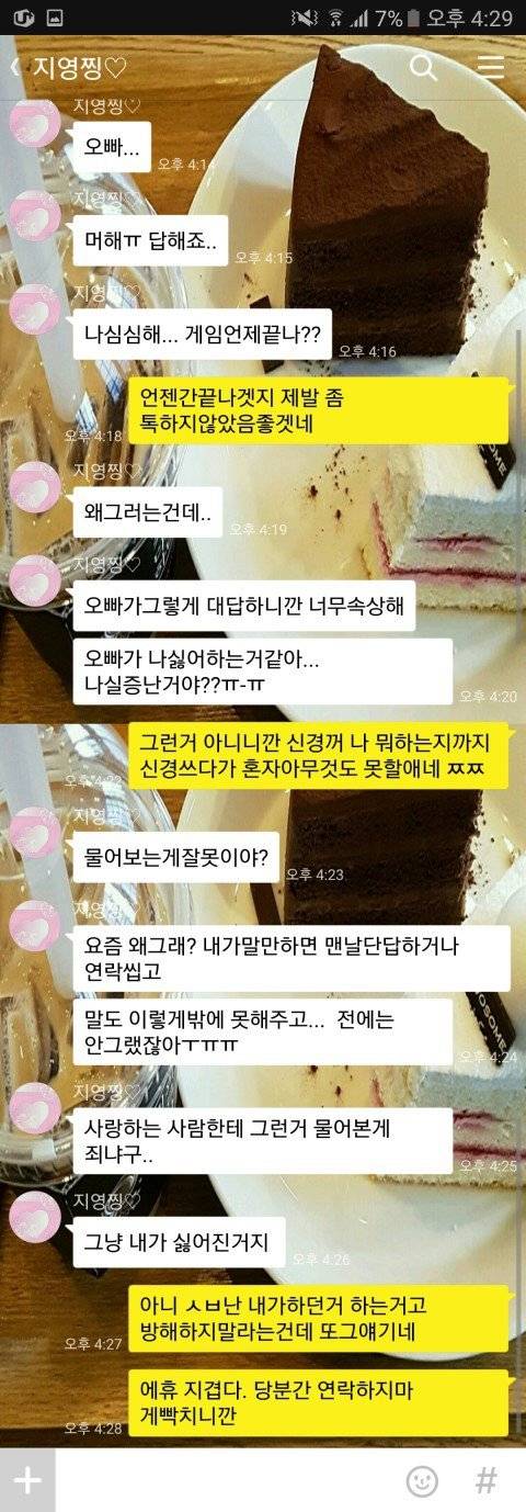 뭔가 이해는 가지만 ㅋㅋㅋ 그래도 남자가 너무하네 그깟게임 머라고