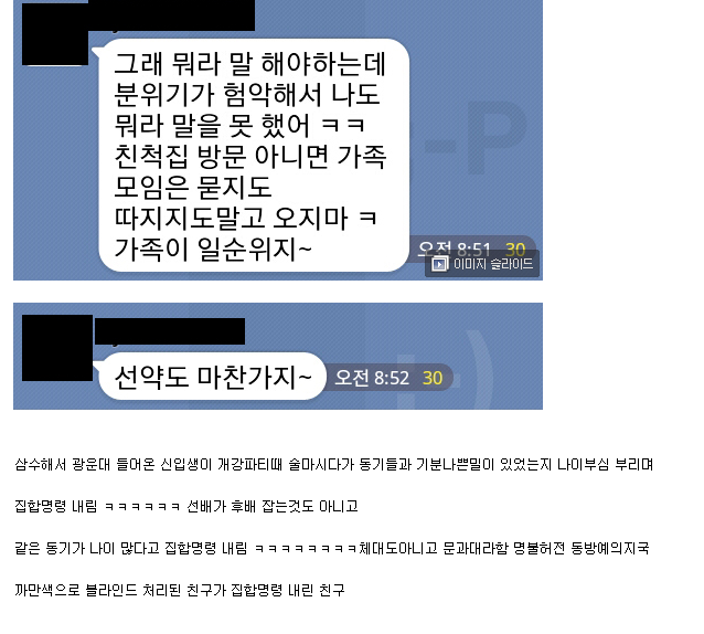 선배가 집합 시키는것도 아니고