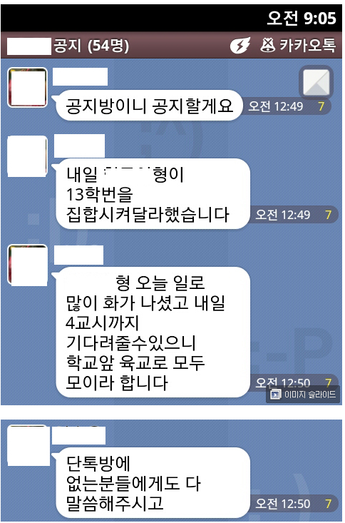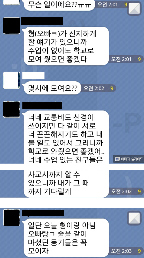 같은 동기인데 나이 많은 형이 집합시킴